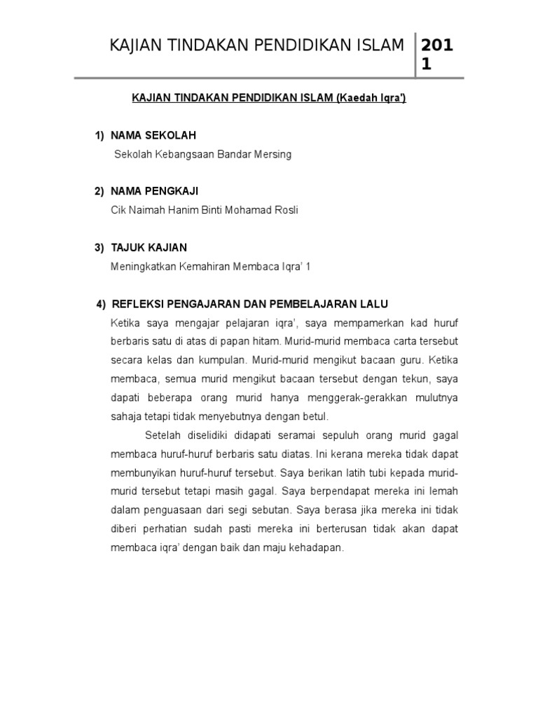 Contoh kajian tindakan pendidikan islam