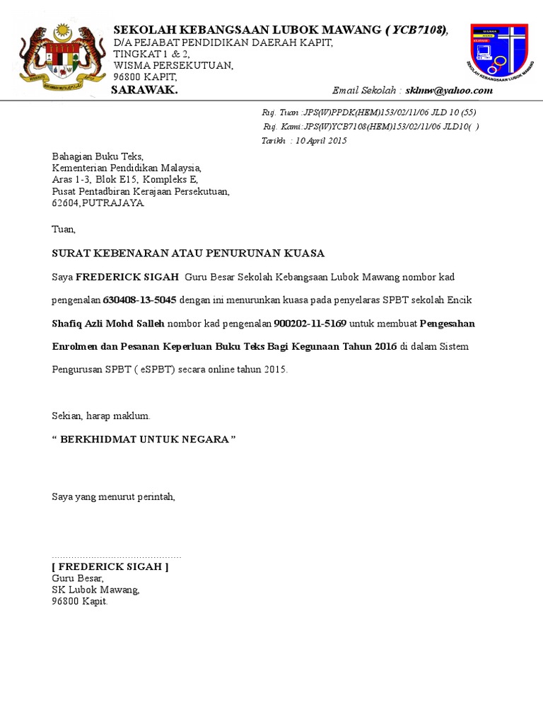 Contoh Surat Iringan Asal Ketua Jabatan - Contoh Surat