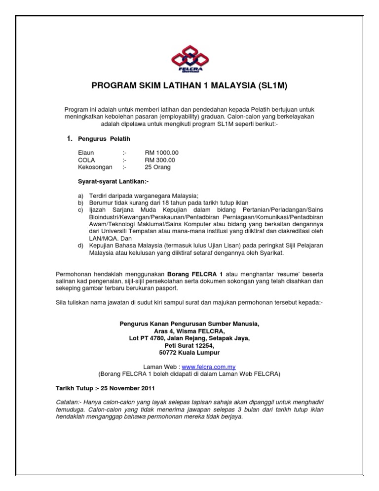 Program Skim Latihan 1 Malaysia - Iklan Felcra PDF