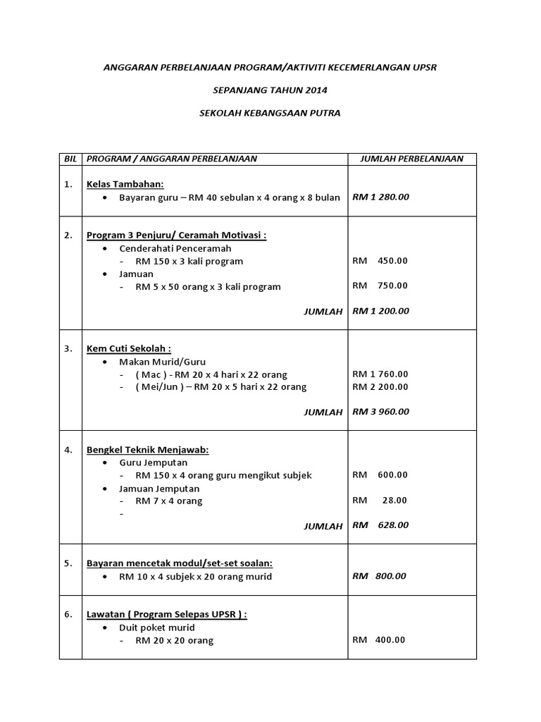 Anggaran Perbelanjaan Programupsr2014 PDF