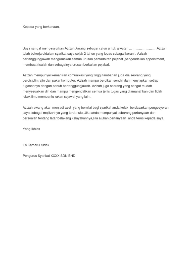 Contoh Surat Sokongan Ketua Jabatan Untuk Temuduga Spa - Contoh Surat