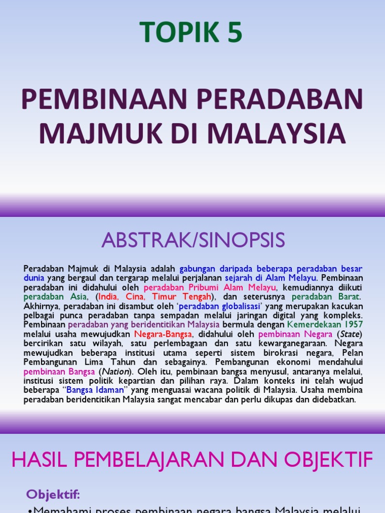 TOPIK 5: PEMBINAAN PERADABAN MAJMUK DI MALAYSIA