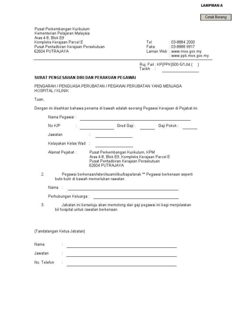 Contoh Surat Sokongan Ketua Jabatan - letter.7saudara.com
